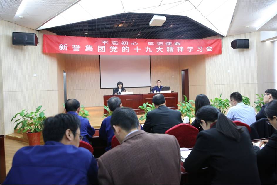 為(wéi)認真學習宣傳貫徹黨(dǎng)的十九大精神,把黨員、幹部(bù)和員工(gōng)的思想統一到黨的十九(jiǔ)大精神上來,11月6日下午,新(xīn)譽集團黨委召開了 “不忘初心、牢記(jì)使命”黨的(de)十九大精神學習會,集團黨委書記(jì)戈亞琴主持會(huì)議,集團全體黨員和中高(gāo)層領導(dǎo)以(yǐ)及黨建結對共建單(dān)位的代表共200餘人參(cān)加。大(dà)會(huì)邀請(qǐng)了常州市委黨校李紅利教授作了黨的十九大精神(shén)輔(fǔ)導報告。