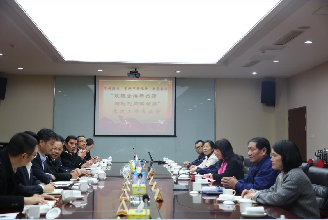 首頁 > 集團新聞為深入學習貫徹黨的十九大精神,深刻(kè)領會十九大對全麵從嚴治黨作出的新部署新(xīn)要求,著力推動黨建工作實現新提(tí)升,12月(yuè)6日下(xià)午,常州海關黨(dǎng)組書記、關長郭炳誌(zhì),常州中國銀行黨委書記、行長王海軍,分別帶領常州海關黨組、常州中國銀行黨委領導和有關同誌(zhì)走(zǒu)進香蕉黄视频网站集團(tuán),開展“政銀企攜手共(gòng)建 新時(shí)代同謀新篇”黨建工作交流會。香蕉黄视频网站集團黨委書記、副總裁戈亞琴攜集團黨務幹部和有關人員一起參加。