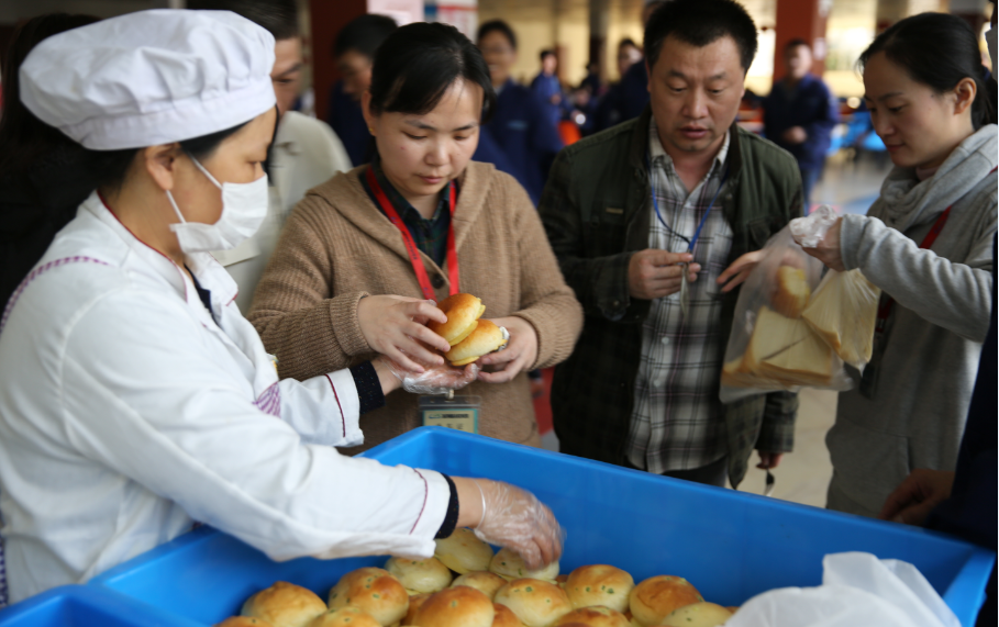 在集團黨委的要求(qiú)和行政的(de)支持(chí)下,通過招聘專業點心師、購(gòu)置各類設(shè)備和原料、規劃計算數量等一係列籌備(bèi)工作(zuò),西點於11月2日正式出爐,果不(bú)其然(rán)大受歡迎,窗口排起長龍。“我要肉鬆麵(miàn)包和(hé)三角蛋糕!”“你不是(shì)減肥嗎?怎麽吃(chī)那麽多?”“好(hǎo)吃啊,吃飽(bǎo)了再減!”嘻嘻哈哈的歡笑聲中,表現出來的是職工(gōng)內心對(duì)食堂午餐的(de)滿意,更是對集團服務員工的肯定和讚許。